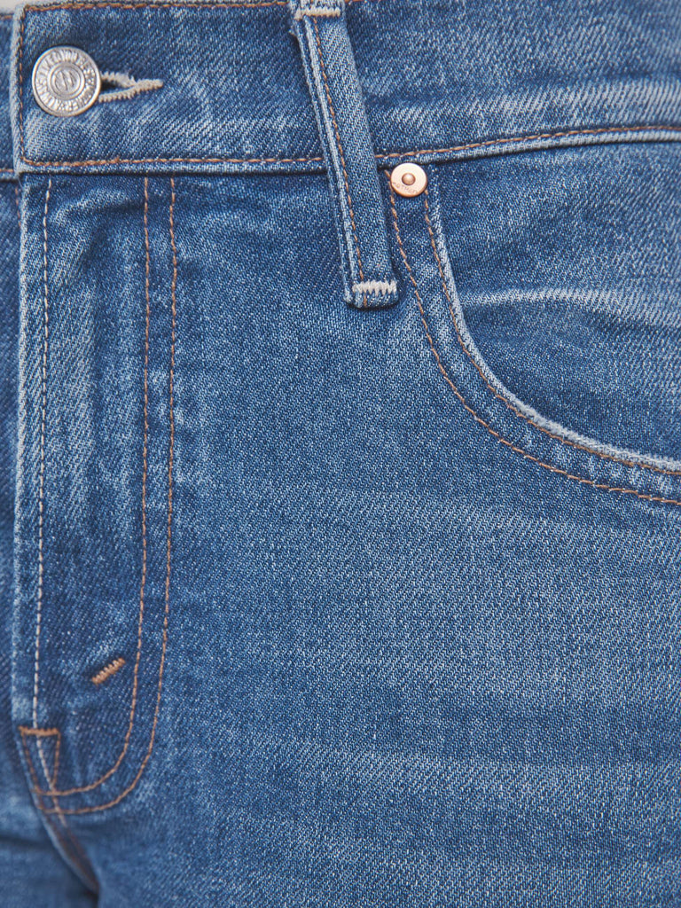 This iconic high-rise bootcut has an ankle-length inseam, zip fly and a clean hem. Made from semi-rigid SUPERIOR denim, Get Two Birds Stoned is a mid-blue with whiskering and fading at the knees.