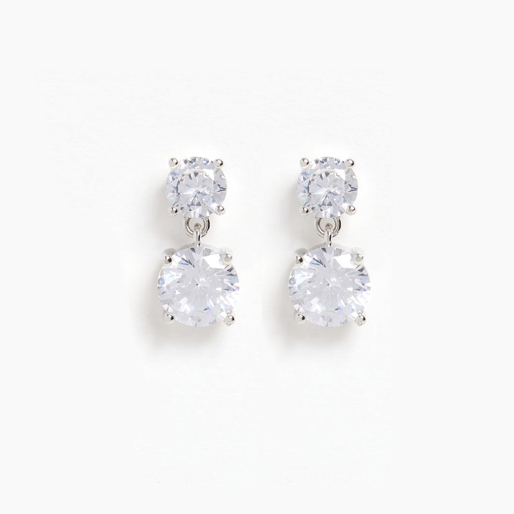 A refined take on classic sparkle, the CZ Drop Earring features a duo of brilliant-cut cubic zirconia stones in a clean, linear silhouette. Set in a sleek silver-plated finish, this minimalist drop design offers just the right amount of shimmer for both everyday polish and understated evening shine.