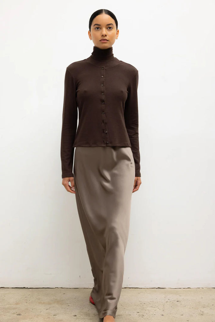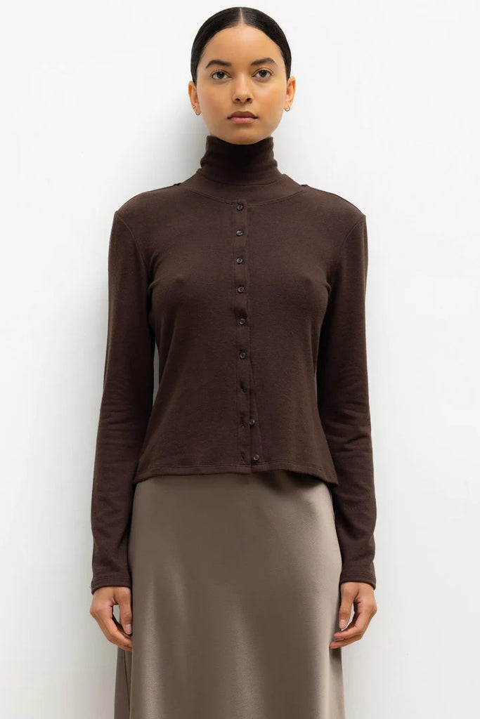 Cut in our buttery soft brushed Lauren sweater jersey, The Lauren Classic Cardigan is the full length sister to our bestselling Lauren Crop Cardigan II. This wardrobe staple features a tonal button front closure and fitted long sleeves.