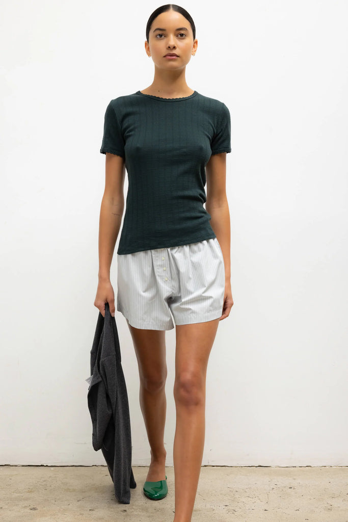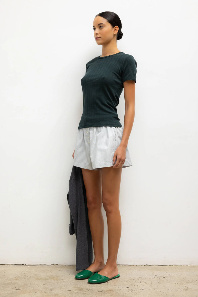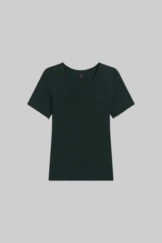 Pointelle Slim Fit Tee in Forest
