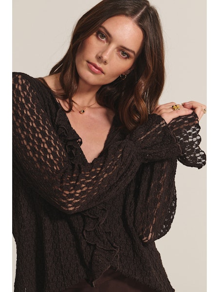 Natalie Longsleeve Ruffle Neck in Chocolate Velvet by Graham & Spencer $179.00 Color Chocolate Size XS S M Chocolate / XS Chocolate / S Chocolate / M Add to Cart